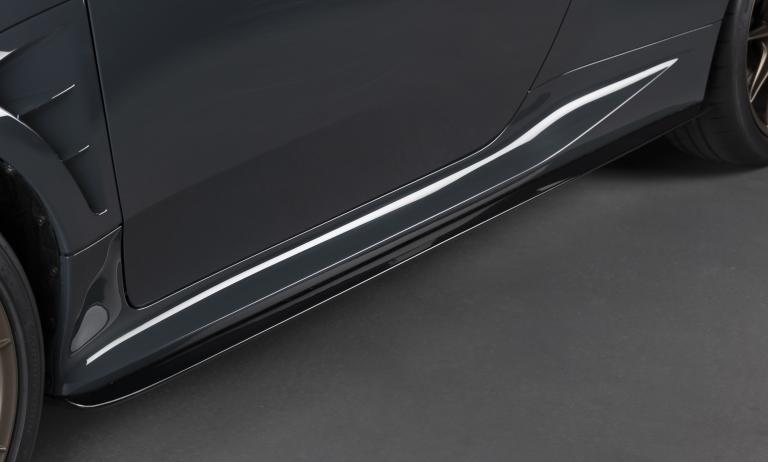 L'aérodynamique et le style extérieur reflètent directement l'origine circuit du modèle. Outre l'aileron arrière en carbone, la voiture reçoit un spoiler avant, des jupes latérales et un capot en fibre de carbone. La teinte exclusive "Gravel Khaki", choisie par Morizo, s'accompagne d'une calandre noir piano, de jantes "Matte Bronze" et d'étriers de frein jaunes. Des éléments d'identification spécifiques, dont l'emblème MORIZO RR et un pare-brise signé, renforcent le caractère de cette édition.