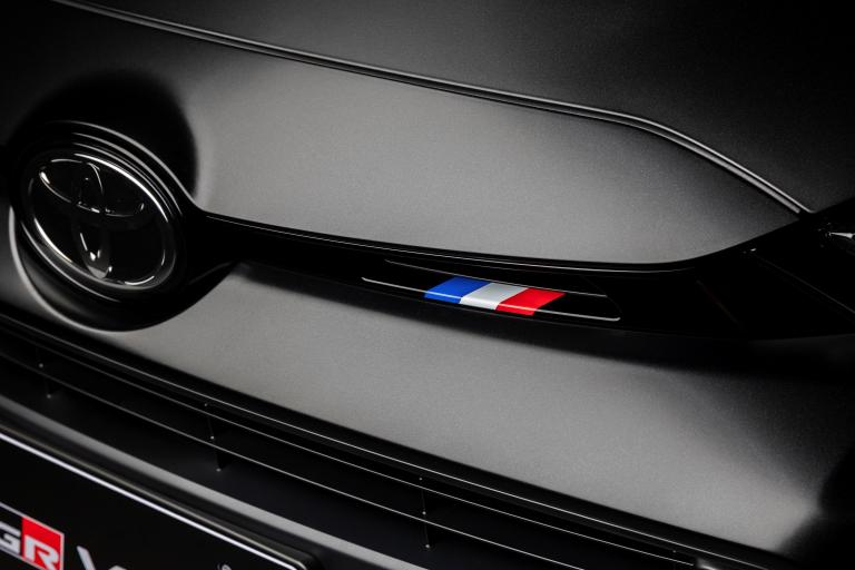 Sur le plan esthétique, la GR Yaris Sébastien Ogier 9x World Champion Edition reçoit une teinte exclusive "Black Gravite", spécialement développée pour ce modèle et associée à des jantes noires mates. Les étriers de frein sont peints en bleu, couleur fétiche d'Ogier, tandis que la calandre reçoit un liseré tricolore rappelant ses origines françaises. La signature de Morizo est apposée sur le pare-brise, et un emblème spécifique identifie cette version à l'arrière.