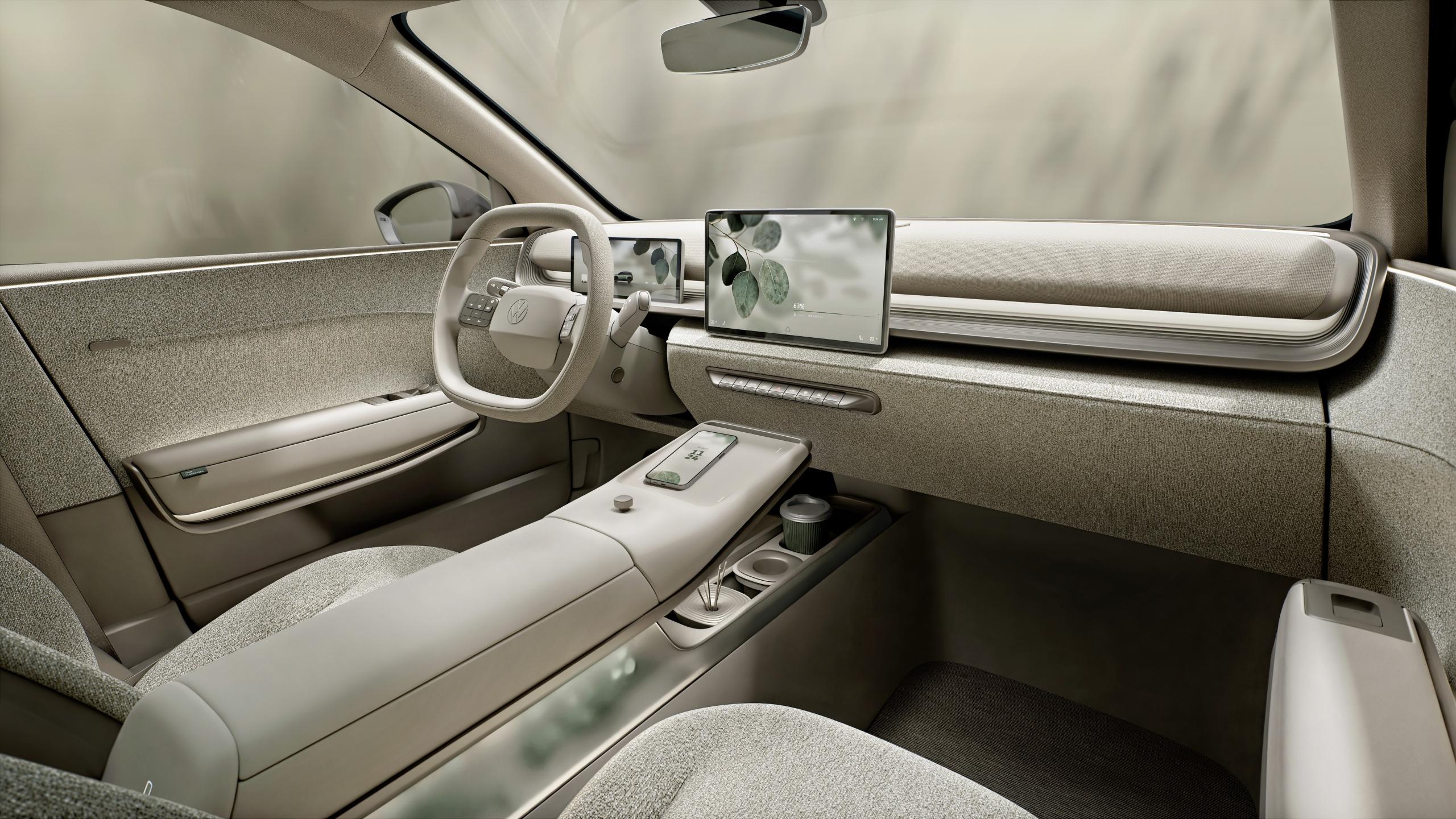 L'habitacle se veut spacieux et modulable, avec une approche épurée et des matériaux textiles. Deux écrans centraux – instrumentation de 11 pouces et système multimédia de 13 pouces – structurent le poste de conduite. Le concept se distingue aussi par ses jantes spécifiques de 21 pouces et sa signature lumineuse inédite.