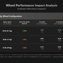 Tyre Reviews, référence sur YouTube des essais de pneumatiques, a mené un test dédié à l'influence du poids des roues sur les performances. Trois jeux de jantes strictement identiques en dimension (19x10 ET25) mais de masses très différentes ont été utilisés : 9,1 kg (20 lb), 17,2 kg (38 lb) et 23,6 kg (52 lb) par roue, toutes chaussées des mêmes Bridgestone Potenza RE-71RS afin d'isoler la variable "masse en rotation". L'auto de test, une M3 F80...
