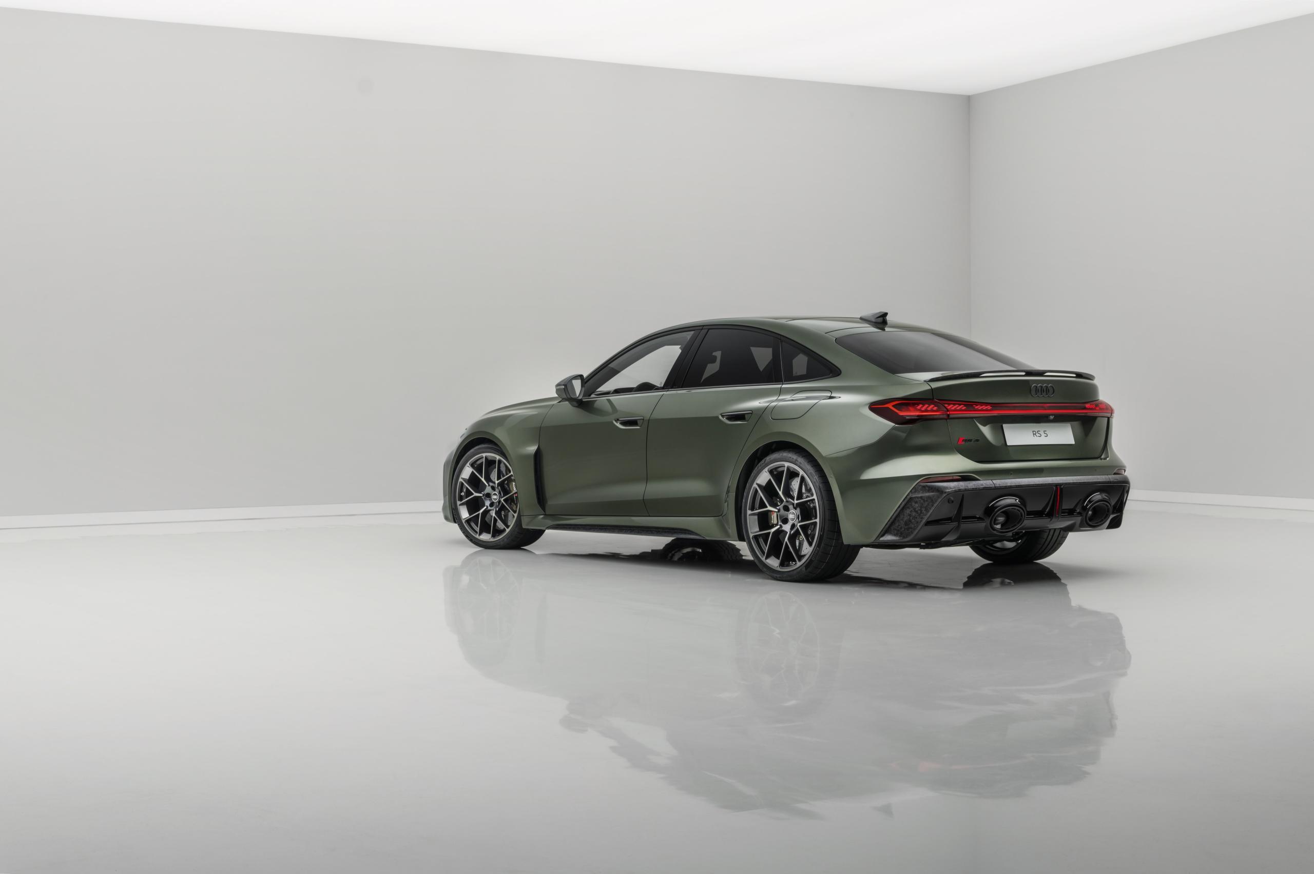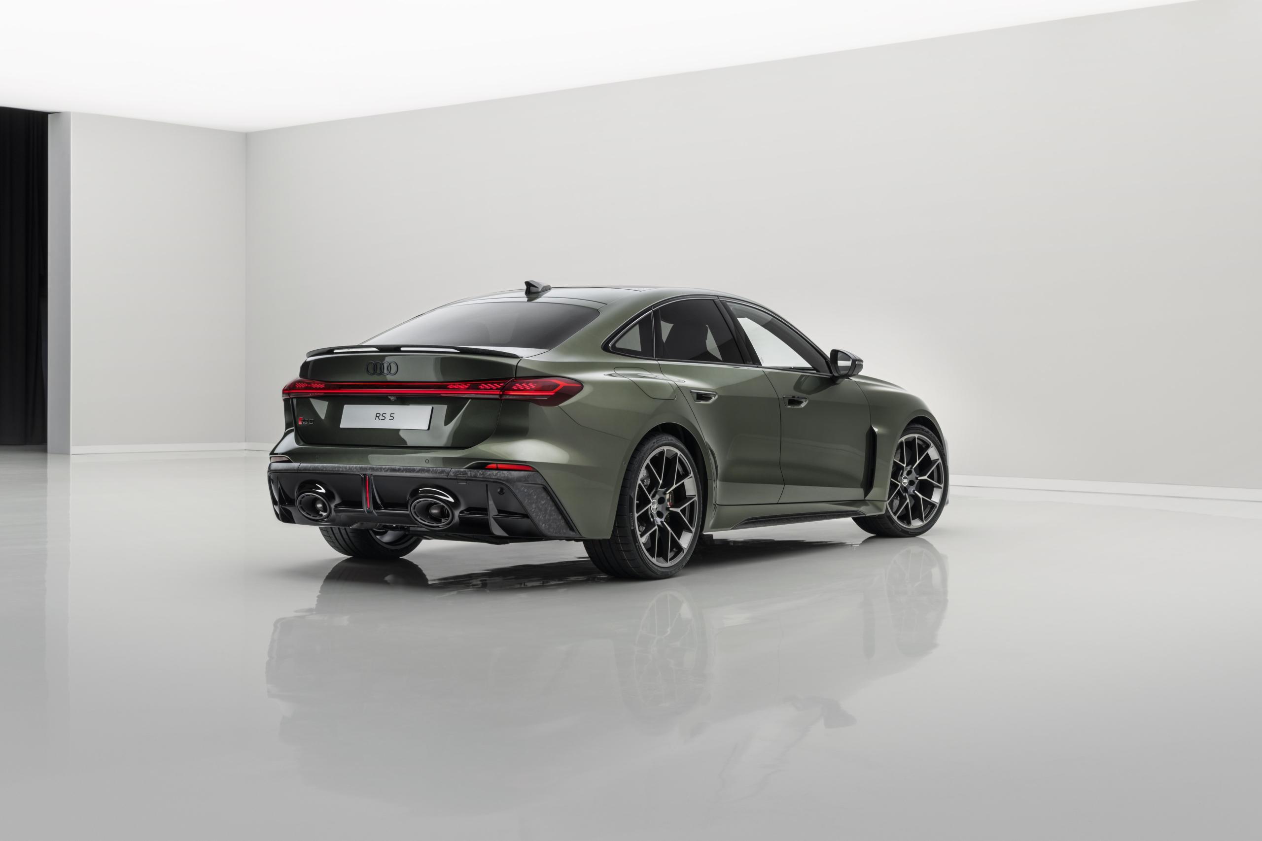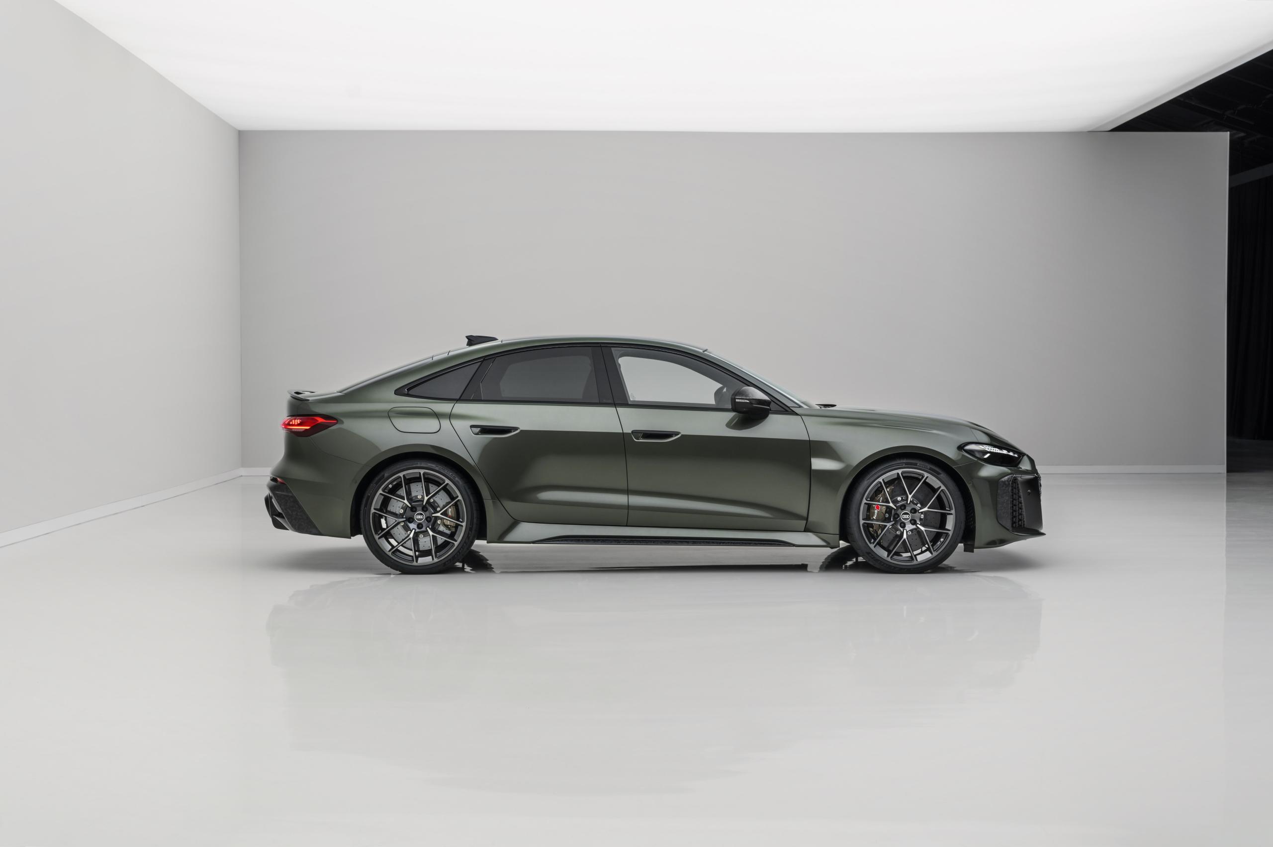 L’Audi RS5 B10 est la première RS hybride rechargeable d’Audi Sport en version Sedan (berline). Elle associe un V6 2.9 biturbo et un moteur électrique pour une puissance cumulée de 639 ch et 825 Nm, avec une batterie de 25,9 kWh bruts rechargeable en courant alternatif jusqu’à 11 kW. Audi annonce un 0 à 100 km/h en 3,6 secondes et une vitesse maximale pouvant atteindre 285 km/h en option.