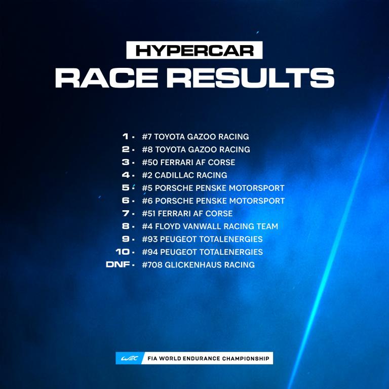 L’équipage Conway, Kobayashi, Lopez de la numéro 7 devance l’autre Toyota et la Ferrari numéro 50.