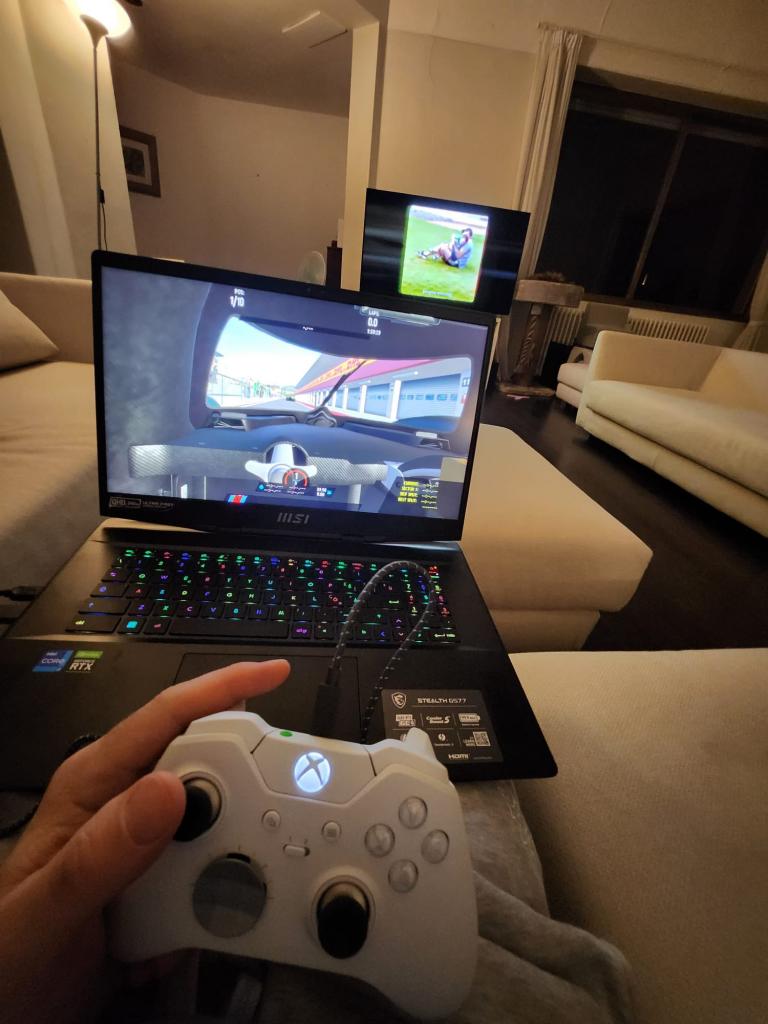 Comment Jacques Villeneuve s'entraîne pour Portimão ? Sur son canapé, avec un ordi portable et une manette Xbox Elite Series 2 (Core ?), pardi !