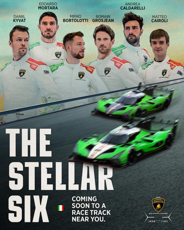 Iron Lynx a dévoilé les équipages de ses Lamborghini SC63. En WEC, ce sera Mirko Bortolotti, Daniil Kvyat et Edoardo Mortara. En IMSA, Andrea Caldarelli sera associé à Matteo Cairoli et Romain Grosjean.