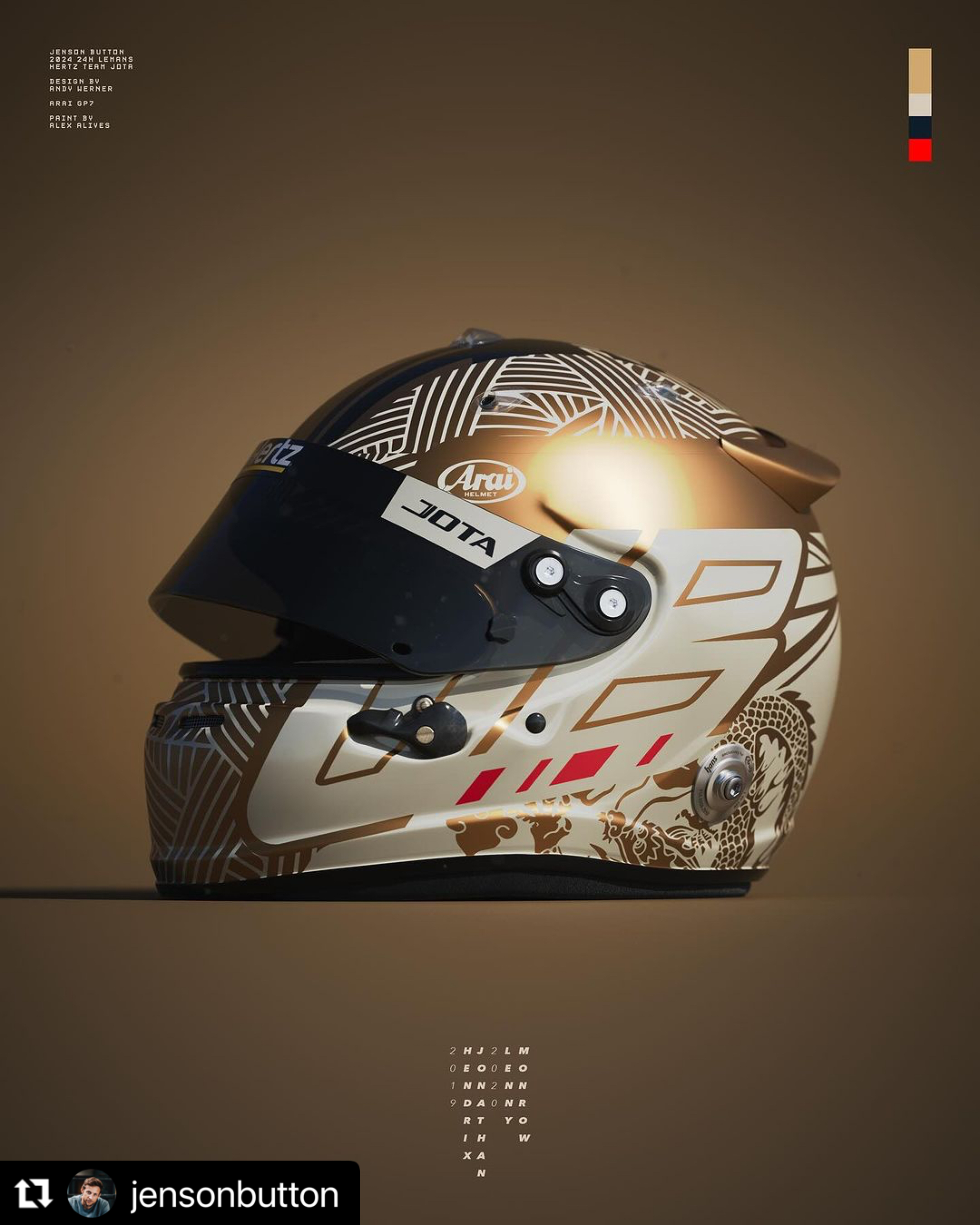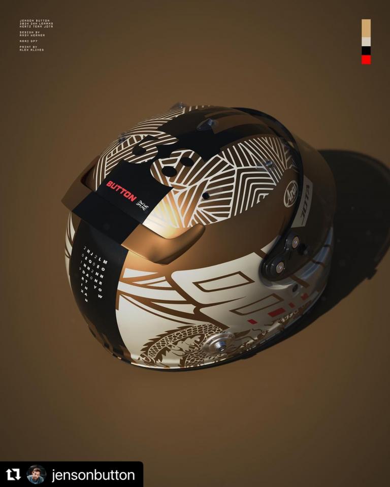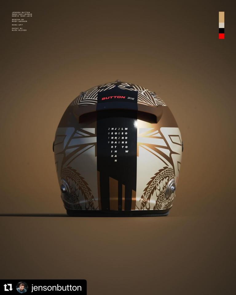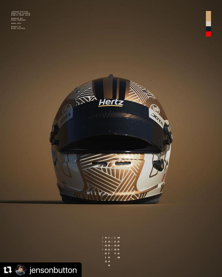 Jenson Button a présenté son casque 2024 "JOTA Hertz" pour l’endurance.