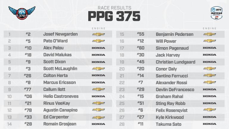 Josef Newgarden s'est imposé au Texas Motor Speedway, devant Pato O'Ward et Alex Palou. Le PPG 375 n'aura pas souri aux Français Romain Grosjean (P14) et Simon Pagenaud (P17).