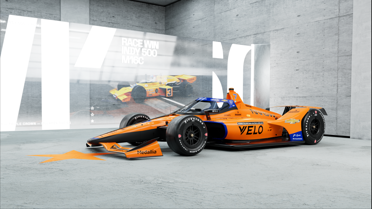 McLaren célèbre "sa" triple couronne avec trois livrées spéciales pour l'Indy 500 ? La orange pour les 500 Miles d'Indianapolis, la "Marlboro" pour le Grand Prix de Monaco et la noire pour les 24 Heures du Mans.