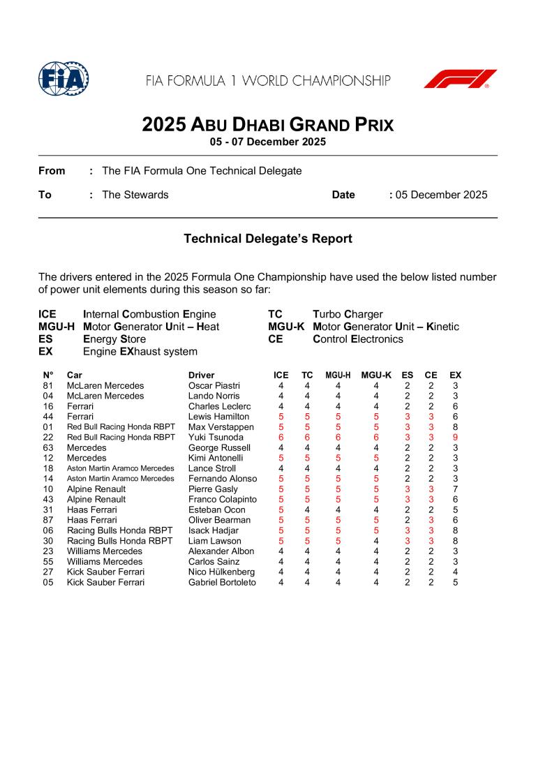 Grand Prix d'Abou Dabi 2025 : point comptable mécanique, pièces moteur