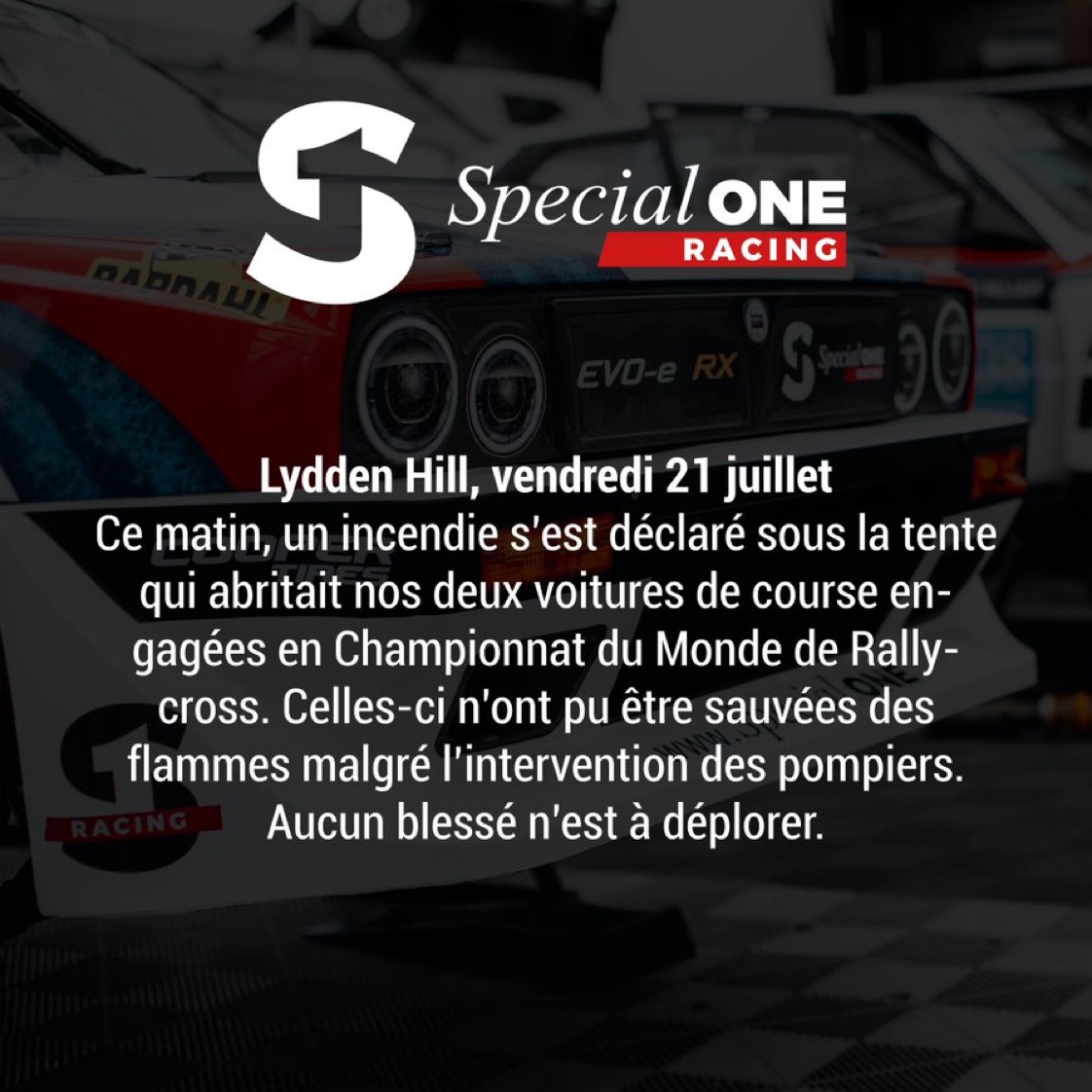 Les voitures du Special One Racing (Sébastien Loeb et Guerlain Chicherit) ont été réduites en cendres à Lydden Hill. Heureusement, aucun blessé n’est à déplorer.