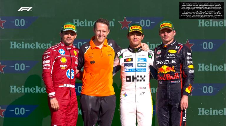 Tsunoda échoue au pied des points (mais ça va, il sait faire des boules de glace), devant Albon, Hadjar et Stroll. Gasly et Colapinto ferment la marche, tandis que Carlos Sainz, Fernando Alonso, Nico Hülkenberg et Liam Lawson ont tous abandonné — le pilote Williams ayant provoqué la courte VSC du dernier tour après s'être immobilisé dans le stade.