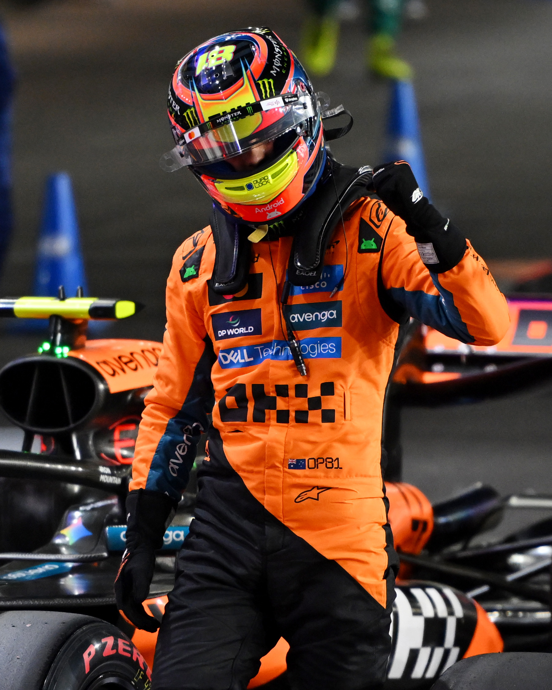 Après un premier jeu de tours lancés mené par Lando Norris, la séance a été brièvement interrompue pour permettre le dégagement d'un débris. À la reprise, le leader du championnat se montrait trop large au virage 2, renonçant immédiatement à sa tentative et laissant la voie libre à son équipier. Piastri saisissait l'occasion avec un tour en 1:19.387 (nouveau record de piste), 0.108 devant Norris, et s'assurait une pole capitale dans la lutte à trois pour le titre.