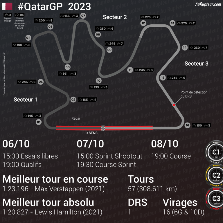 🇶🇦 #QatarGP - Programme 📺 06/10/2023 - FP : 15:30 & Qualifs : 19:00 ⏱️ 07/10/2023 - Sprint Shootout : 15:00 ⏱️ & Sprint : 19:30 🏃 08/10/2023 - Course : 19:00 🏁