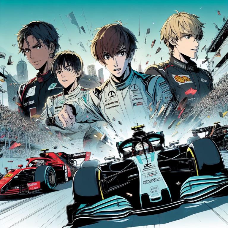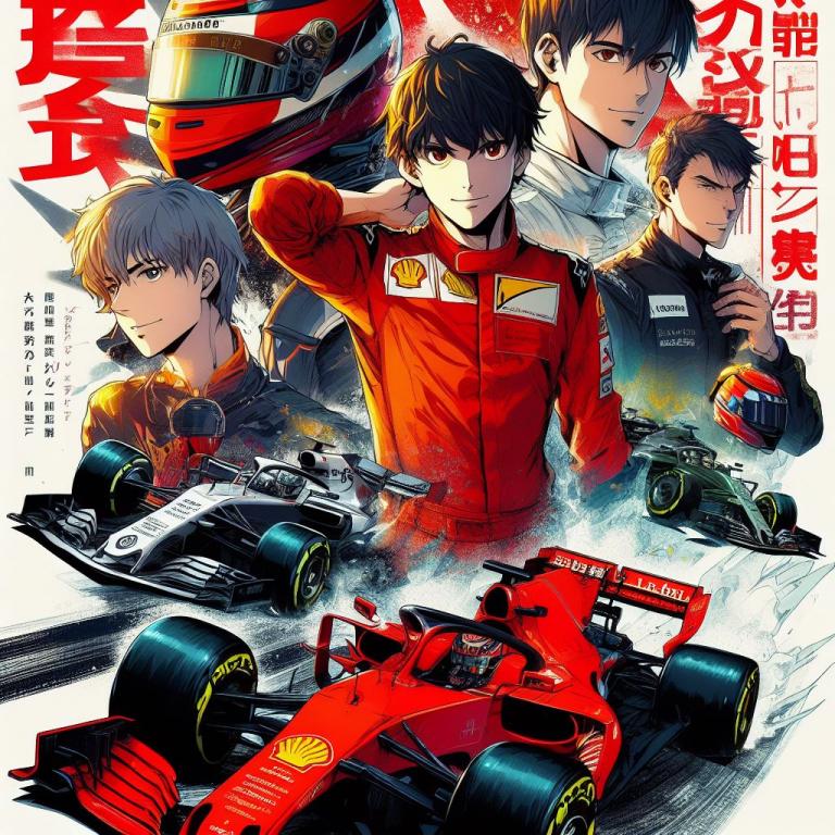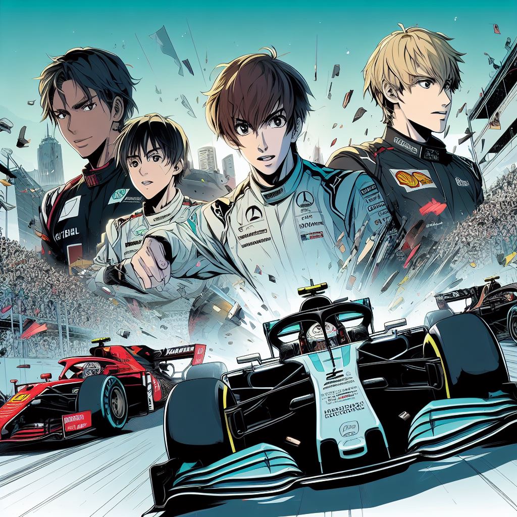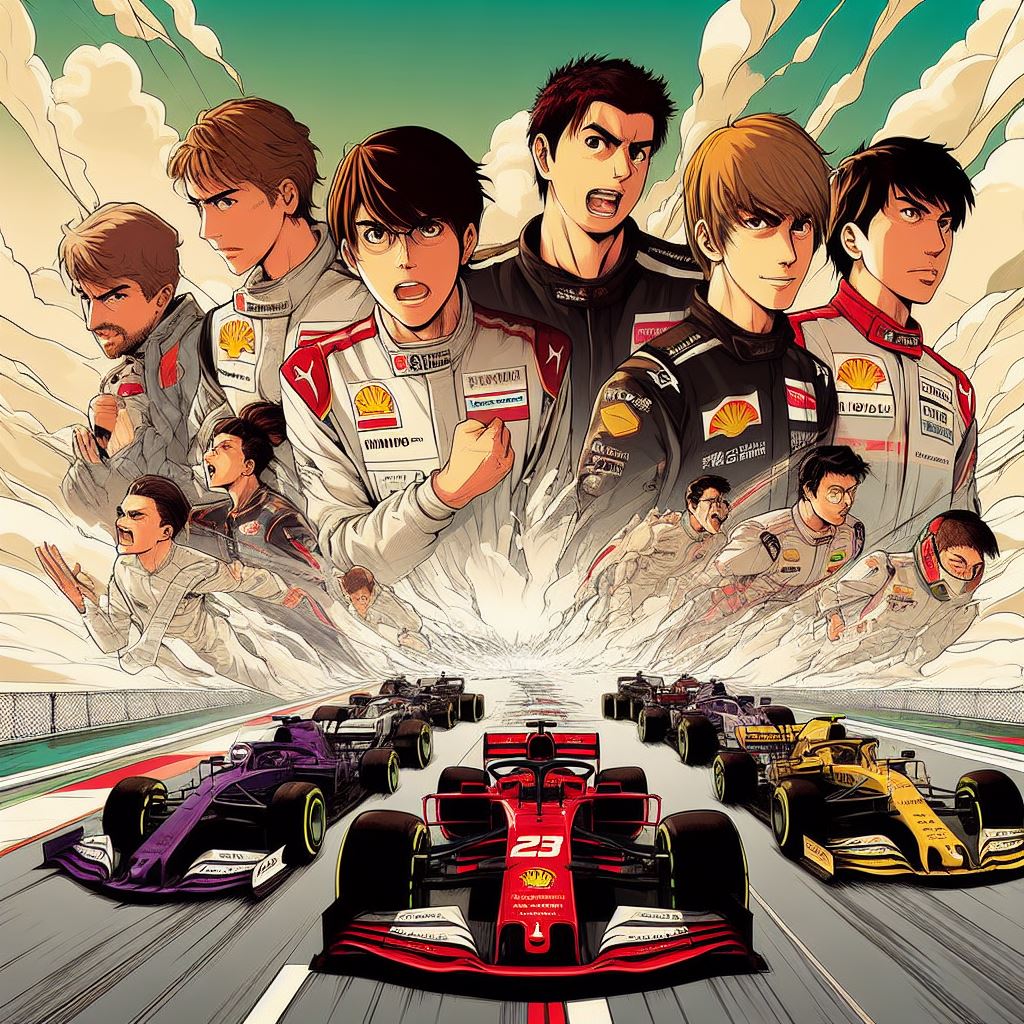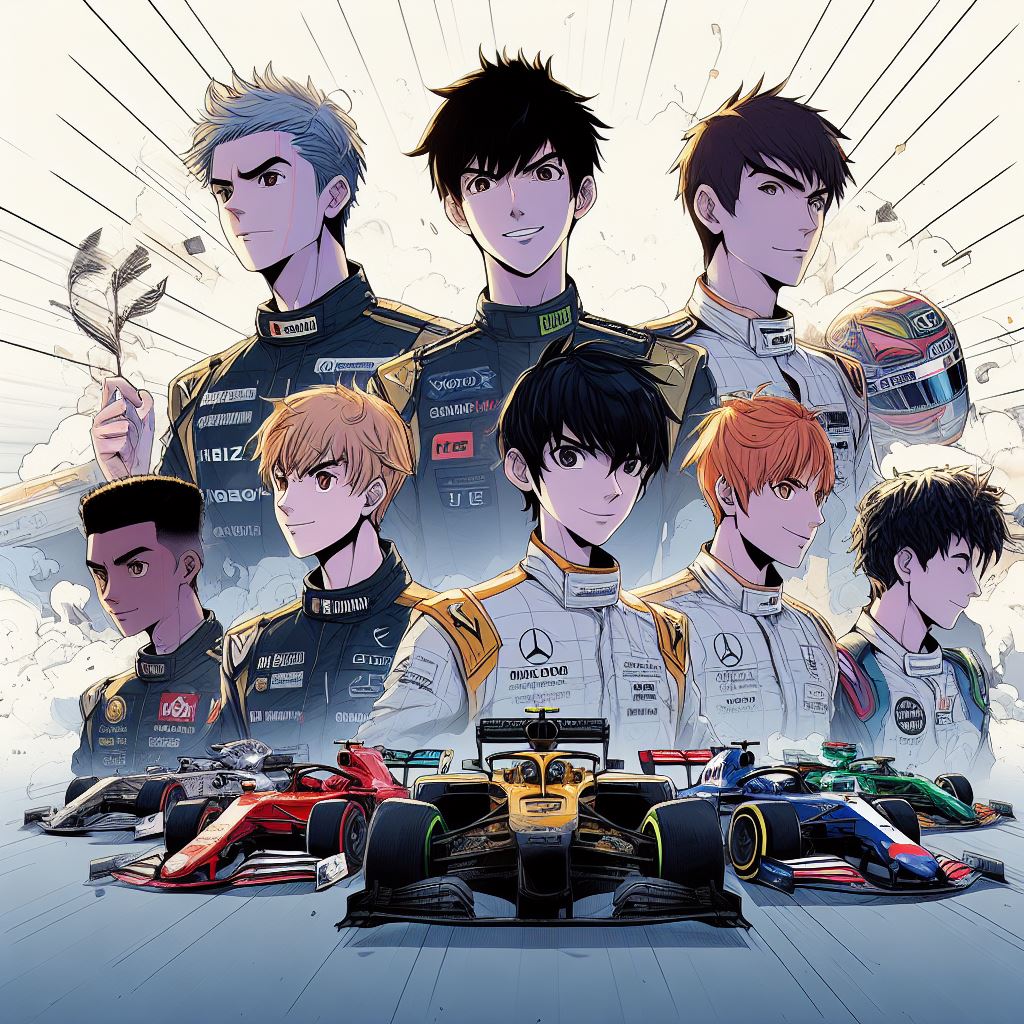 Voici des images générées par DALL·E 3 via Bing avec la requête : "Affiche dramatique de pilotes de Formule 1, façon manga."