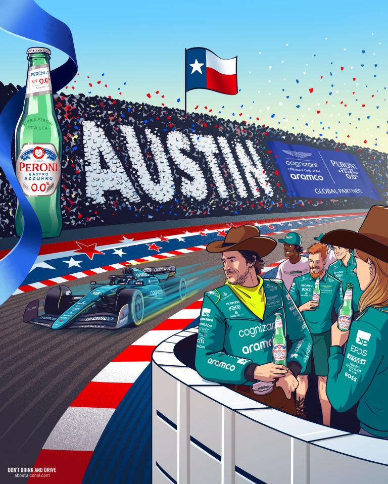 Le poster texan d’Aston Martin x Peroni