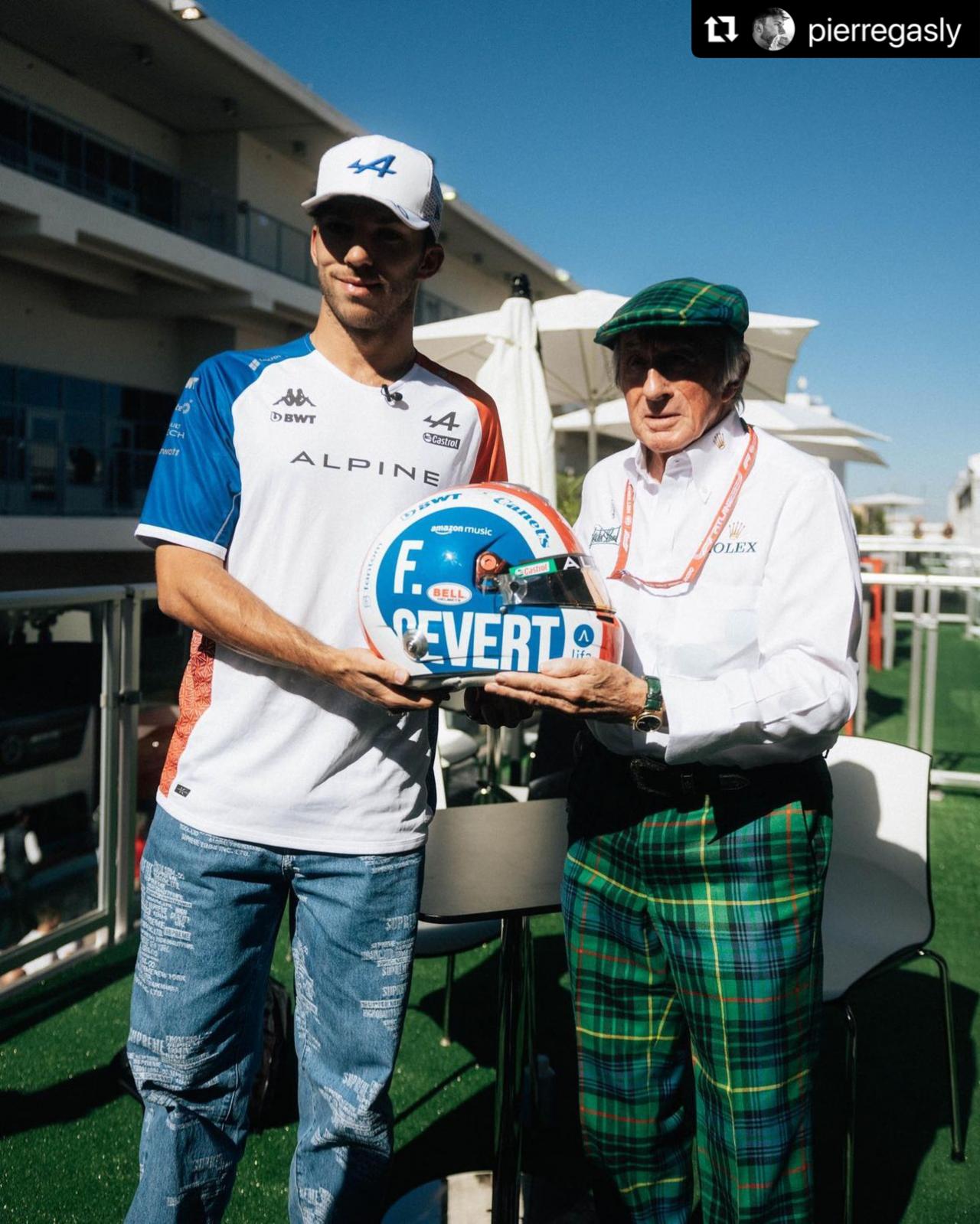 Le casque hommage à Cevert de Pierre Gasly à l'#USGP, comme JEV à Monaco en 2013.