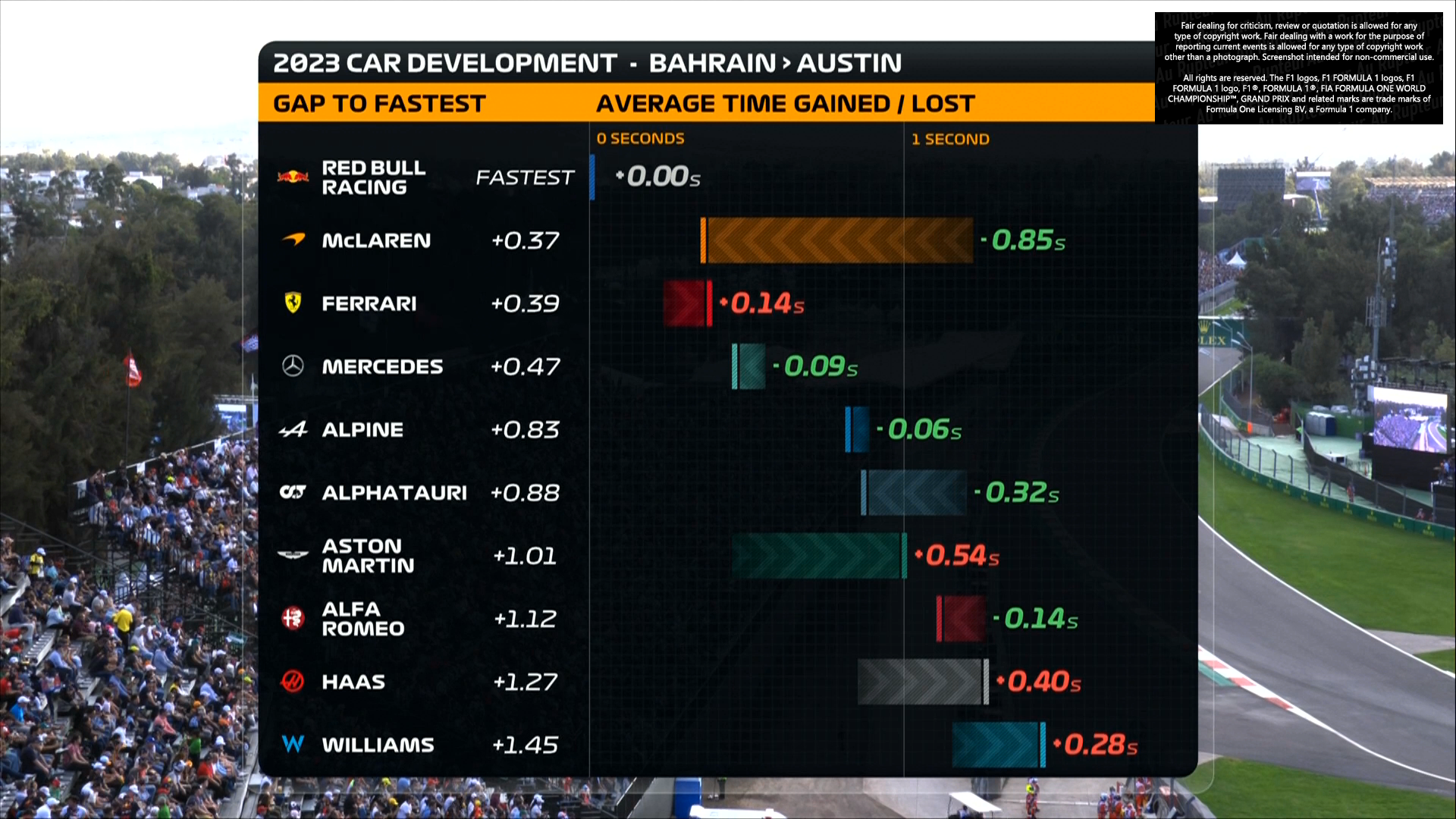 Le graphique de développement des F1 en 2023, de Bahreïn à Austin.