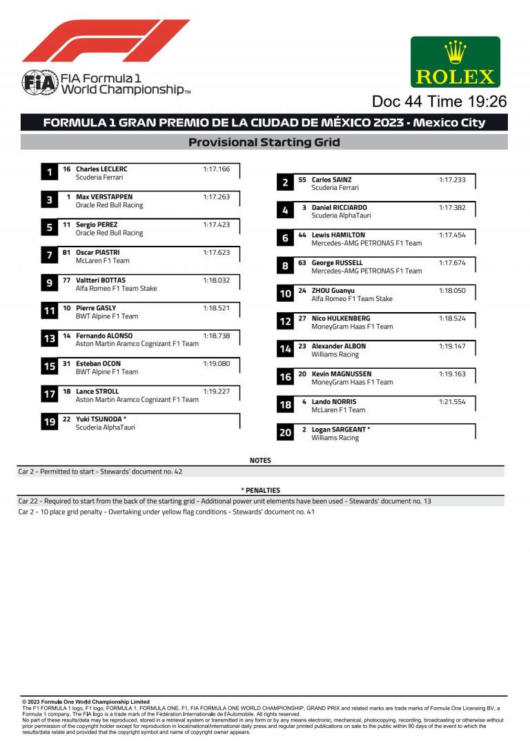Résultats définitifs des qualifications et grille de départ provisoire.