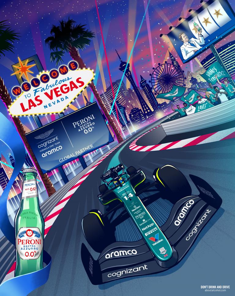 Le poster Las Vegas d’Aston Martin x Peroni.