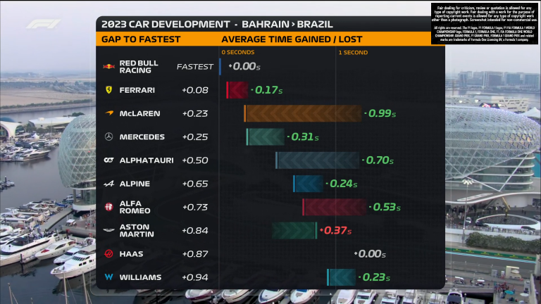 La Formule 1 a partagé un graphique de développement des monoplaces de Bahreïn au Brésil.