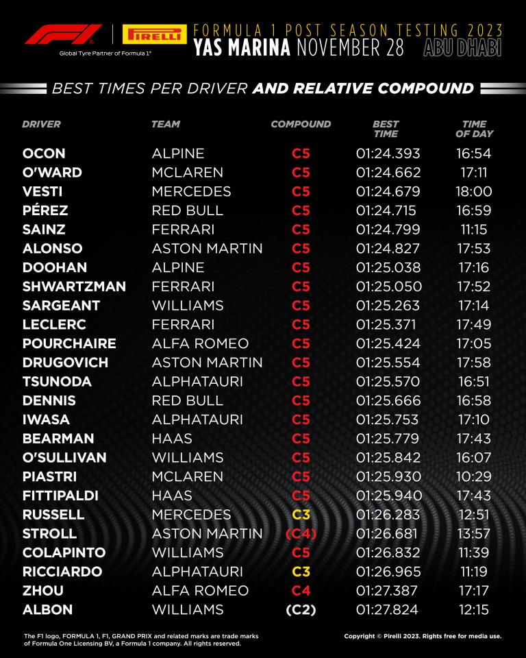 Pirelli a également partagé son récapitulatif.