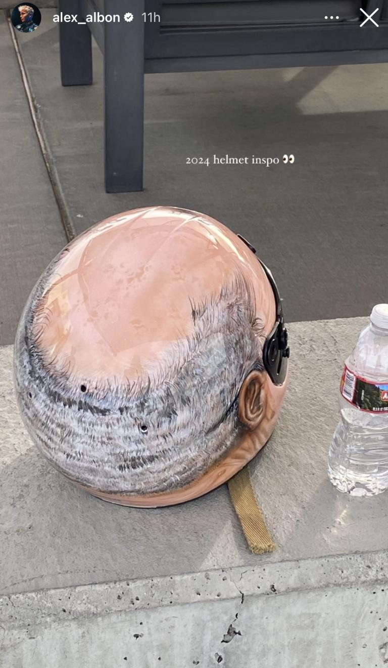 Alex Albon a partagé les photos d’un casque… spécial (hommage à Franz Tost ?! 😅 Est-ce son casque à venir pour les essais hivernaux, à la Bottas ?) et d’une Singer, une Porsche 911 964 préparée.
