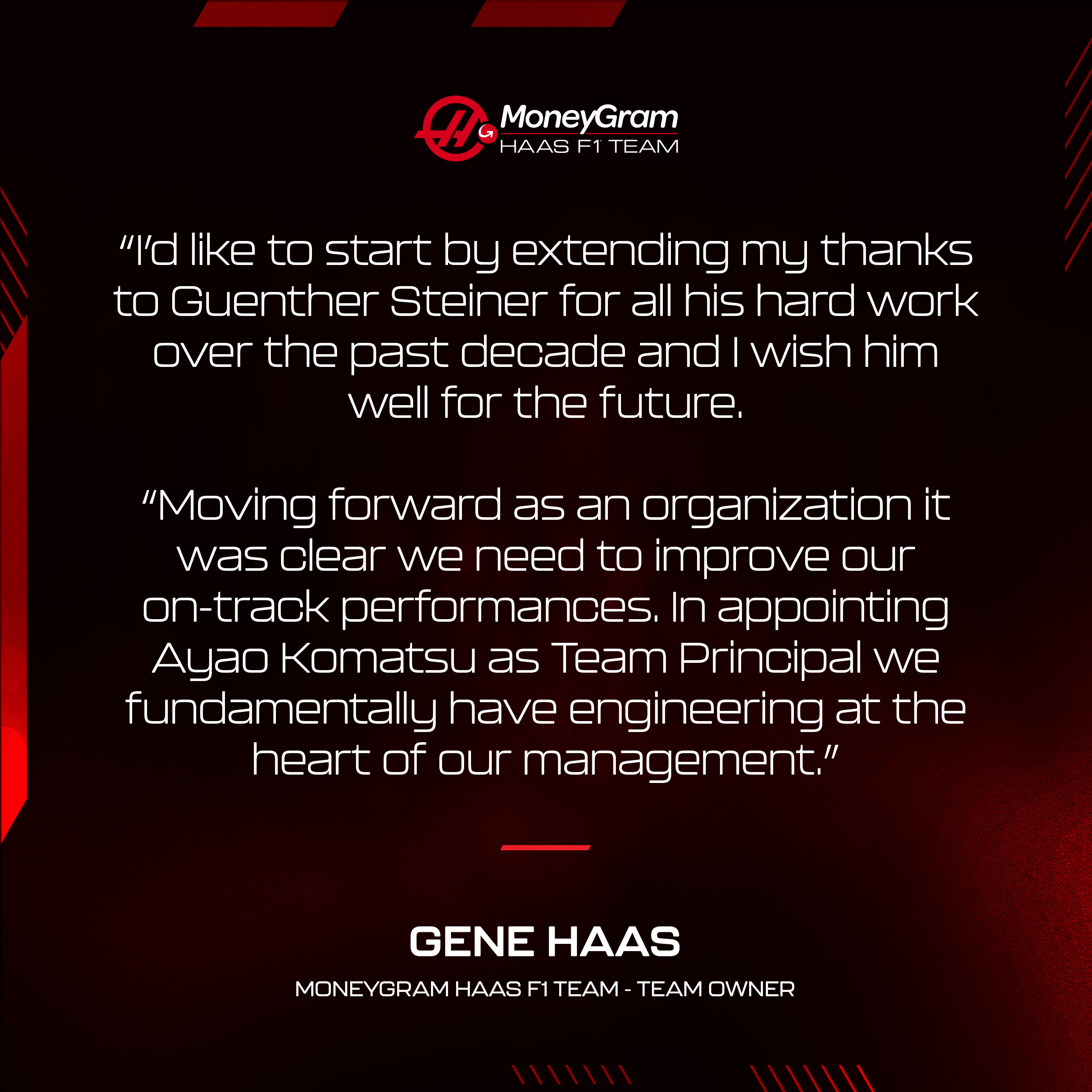 Guenther Steiner remplacé comme directeur de l’écurie Haas par Ayao Komatsu.