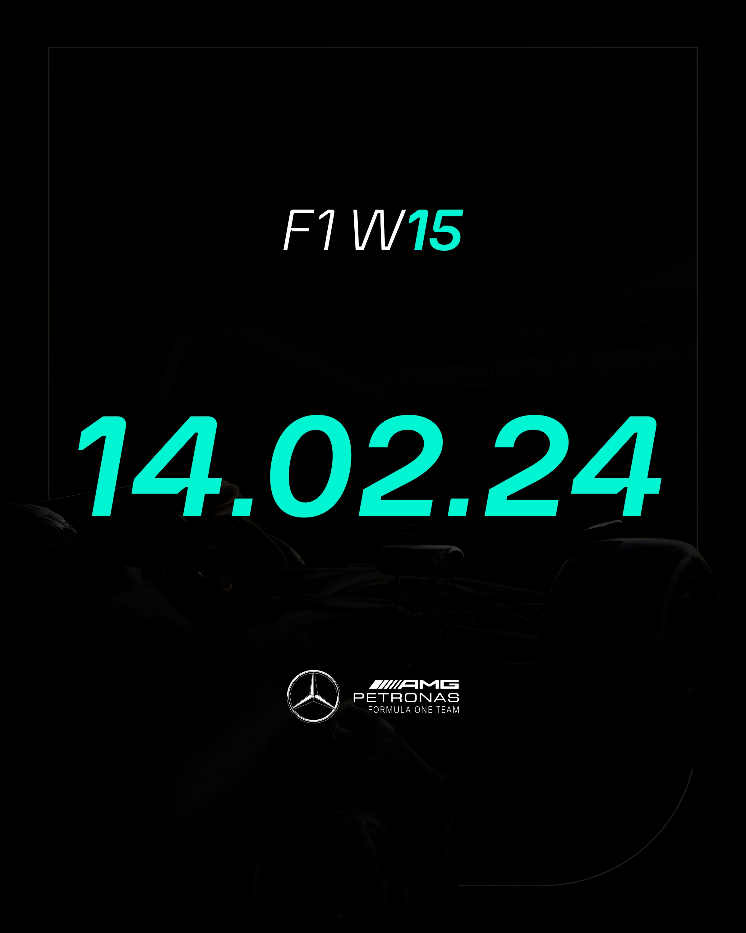 Mercedes présentera sa monoplace 2024, la W15, le 14 février sur ses réseaux sociaux en direct depuis Silverstone.
