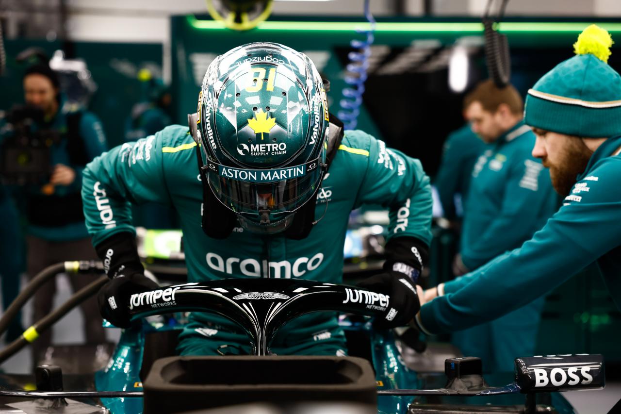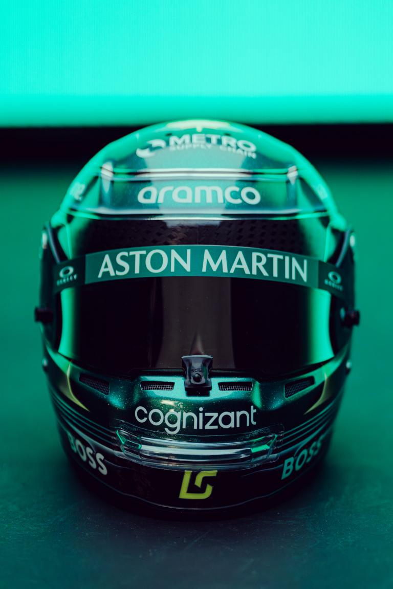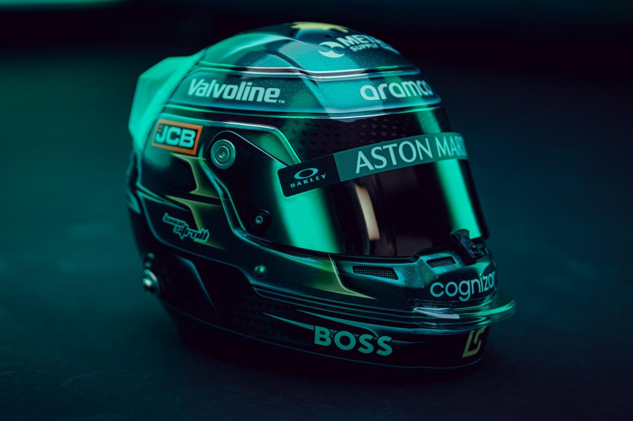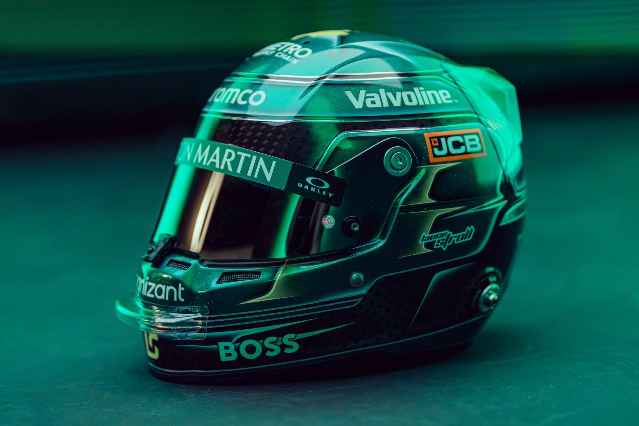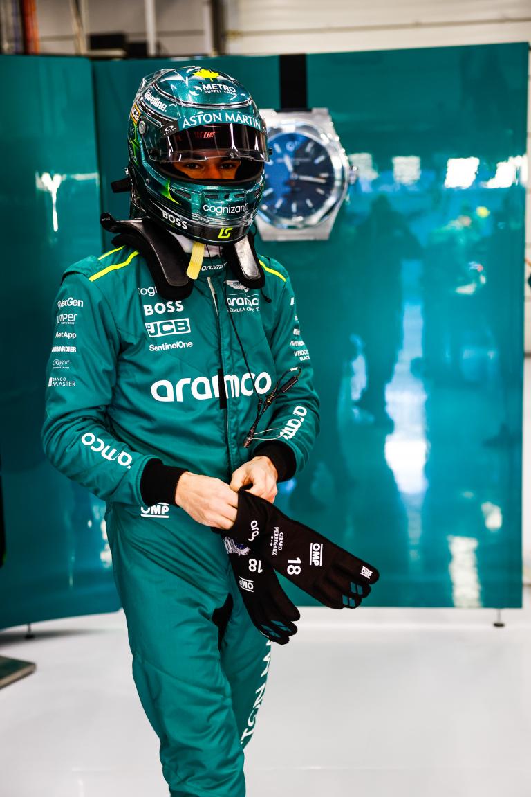 Nouvelle combinaison et nouveau design de casque pour Lance Stroll, qui a pu conduire l'AMR24 à Silverstone pour un shakedown qui a suivi la présentation de la F1 d'Aston Martin pour 2024.