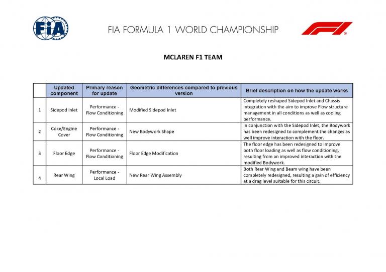 La liste des modifications apportées sur la McLaren pour Bahreïn a été publiée.