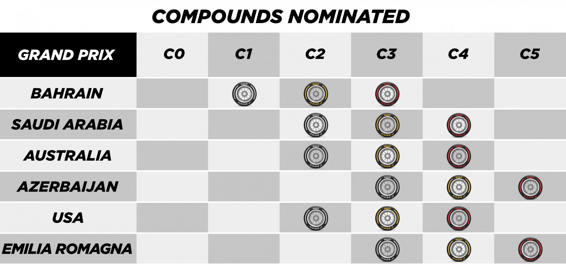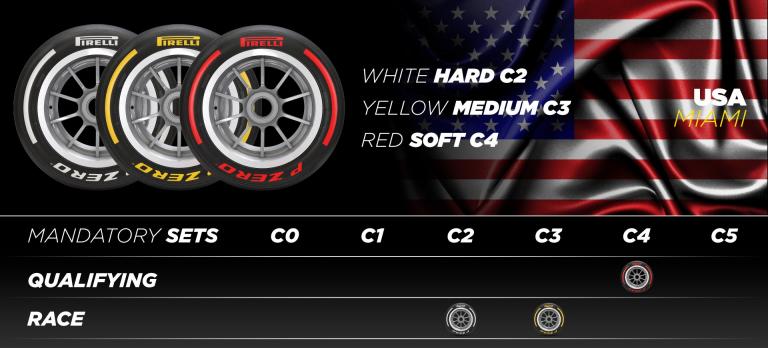 Miami : C2, C3 et C4 (un cran plus tendre qu'en 2022).