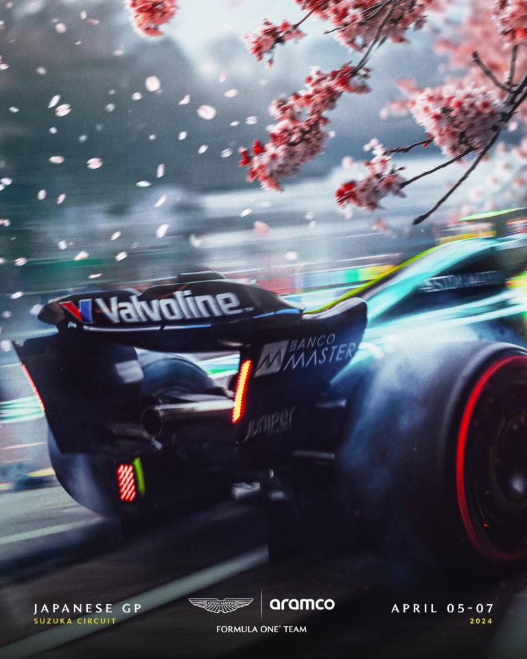 Le poster Aston Martin 2024 pour le Japon, mettant les cerisiers en fleurs à l’honneur.