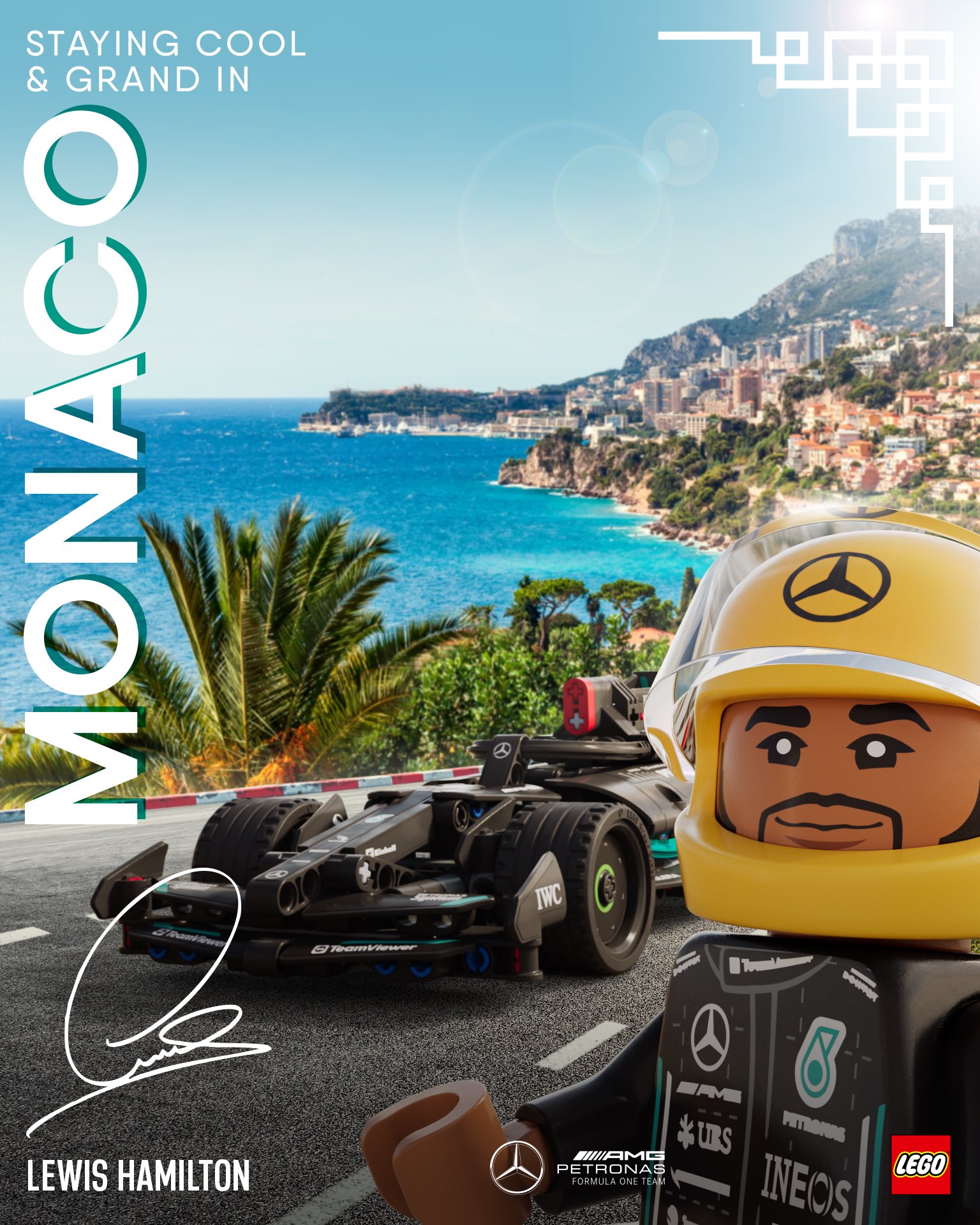 Le poster Mercedes x LEGO pour le Grand Prix de Monaco 2024 !