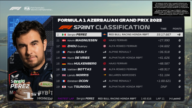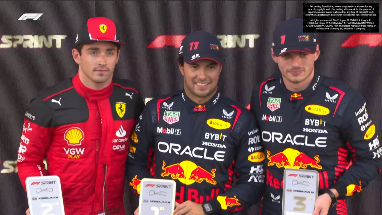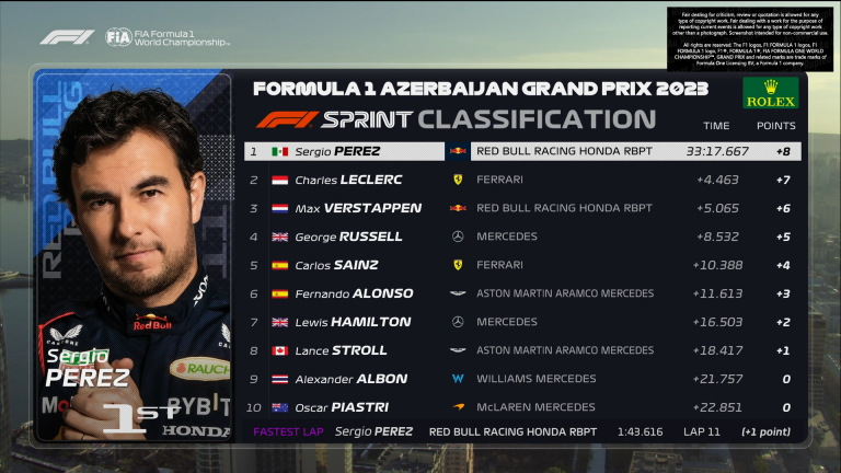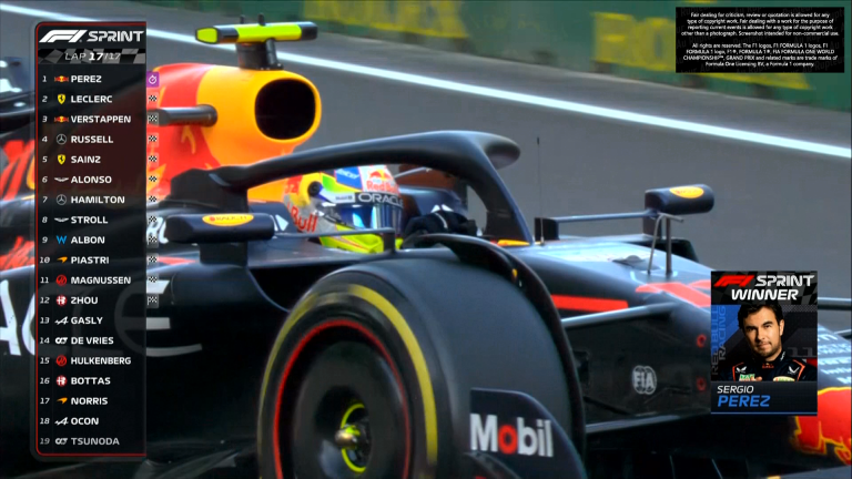 Victoire de Pérez en course Sprint devant Leclerc et Verstappen.