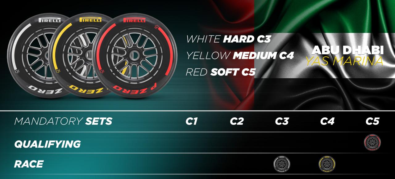Retour aux Brefs F1Le circuit de Yas Marina à Abu Dhabi accueillera une fois de plus le Grand Prix de clôture de la saison de F1. Comme à Las Vegas, Pirelli proposera les composés les plus tendres de sa gamme : C3 pour les durs, C4 pour les médiums et C5 pour les tendres.