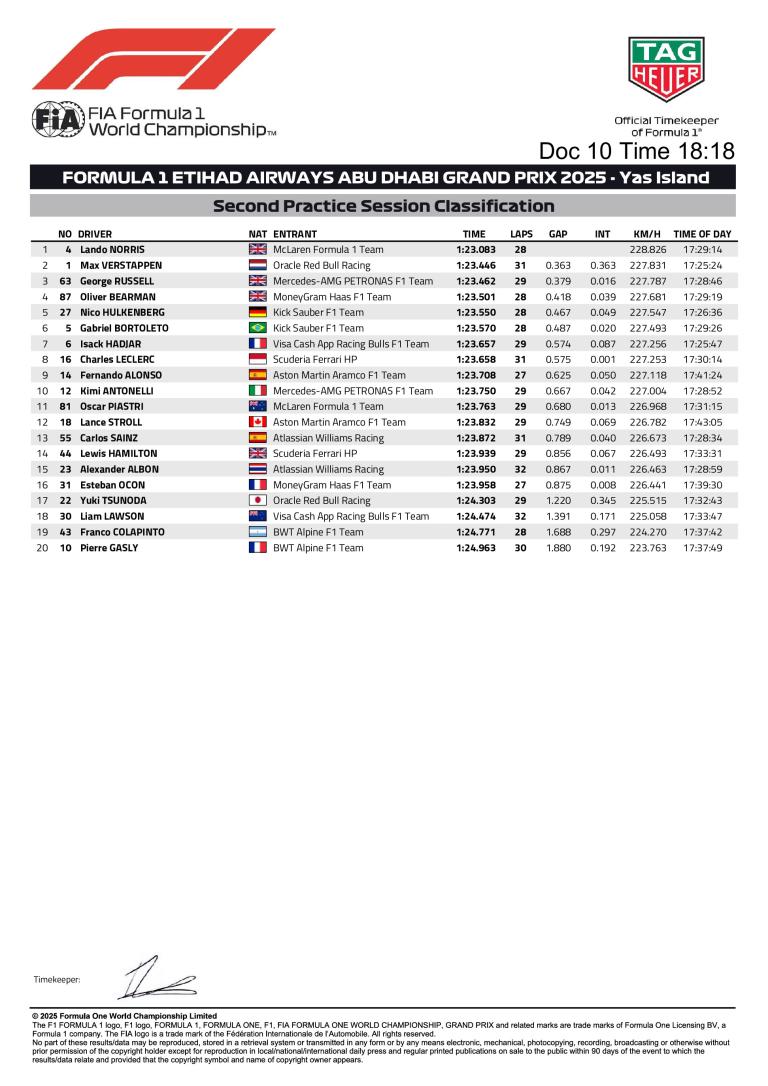 Grand Prix d'Abou Dabi 2025 : résultats de FP2