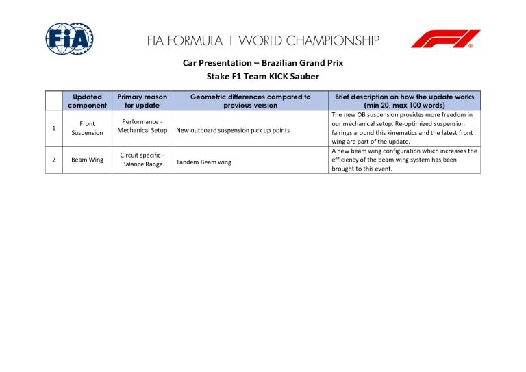 Stake F1 Team Kick Sauber : optimisations de suspension et de configuration aérodynamique pour Interlagos.