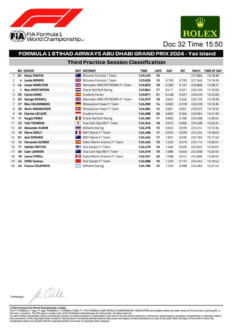 Grand Prix d'Abou Dabi 2024 : résultats de FP3