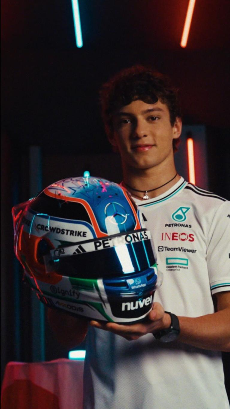Andrea Kimi Antonelli a présenté son premier casque de F1, assez proche du design déjà utilisé dans les formules inférieures.