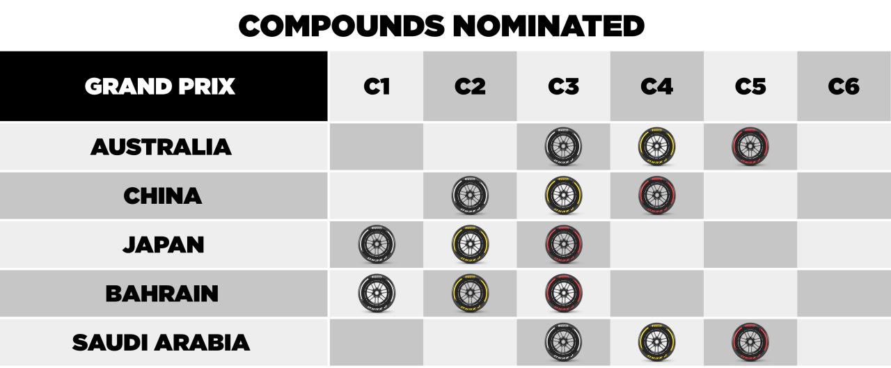 Retour aux Brefs F1À quelques jours du coup d'envoi de la saison 2025 de Formule 1, Pirelli a levé le voile sur les sélections de pneus retenues pour les cinq premières manches du championnat. Si l'Australie, la Chine, le Japon et Bahreïn conservent les mêmes combinaisons que l'an dernier, l'Arabie Saoudite s'offre une première évolution stratégique.