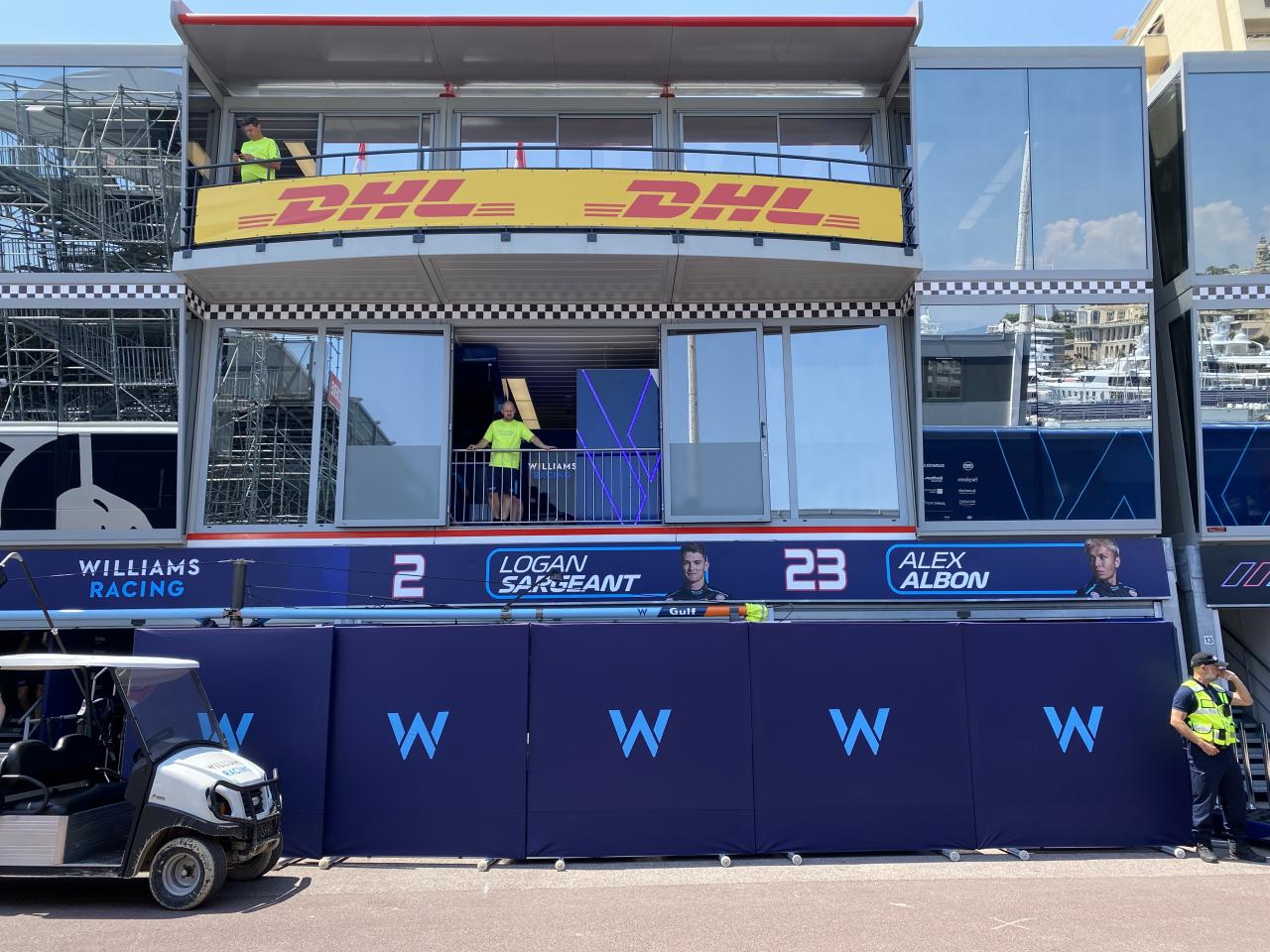 Les préparatifs pour le Grand Prix de Monaco se poursuivent dans les stands.