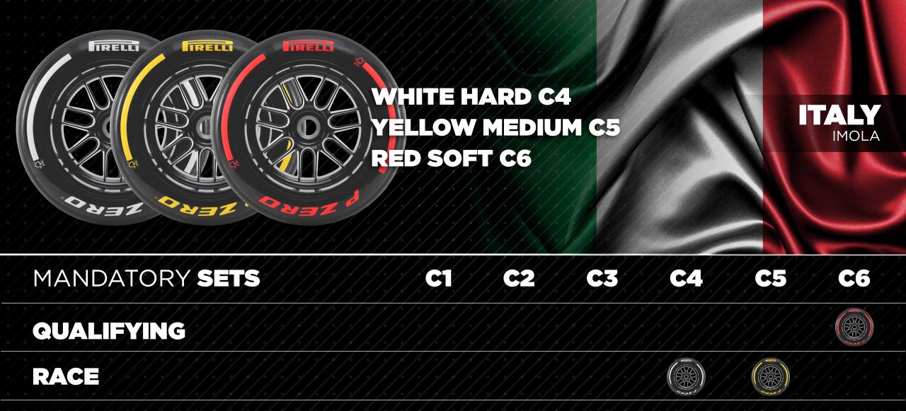 Retour aux Brefs F1Pour le Grand Prix d'Émilie-Romagne 2025, Pirelli introduira pour la première fois en course le tout nouveau composé C6, le plus tendre de la gamme actuelle. Ce pneu chaussé de rouge sera accompagné du C5 en médium (jaune) et du C4 en dur (blanc).