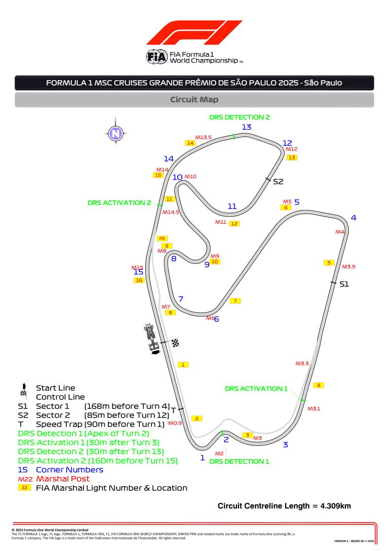 Pour le Grand Prix du Brésil 2025, plusieurs travaux ont été réalisés sur le circuit José Carlos Pace d'Interlagos, sans changement concernant les zones DRS. La FIA a indiqué que la zone hachurée séparant la voie de sortie des stands et la…