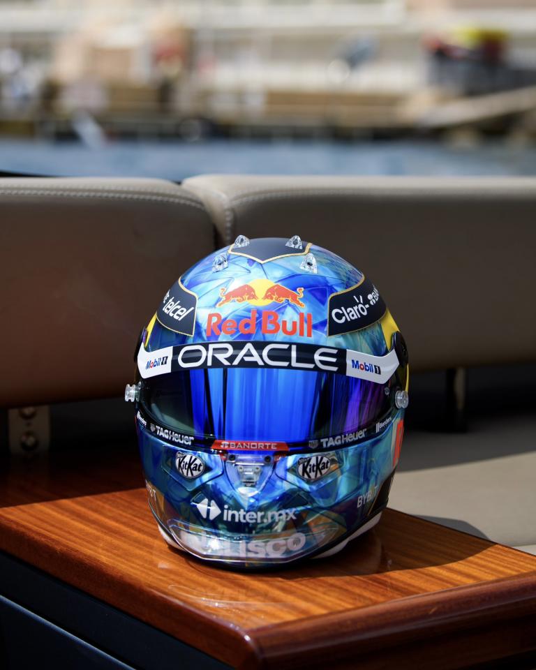 Red Bull a partagé le casque spécial Monaco de Checo Pérez.