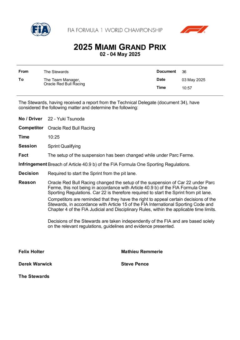 Grand Prix de Miami 2025 : grille de départ du Sprint