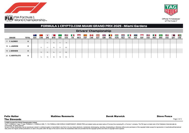 La FIA a publié tardivement les résultats définitifs du Grand Prix de Miami 2025. Piastri est donc bien premier, suivi par son coéquipier Norris.