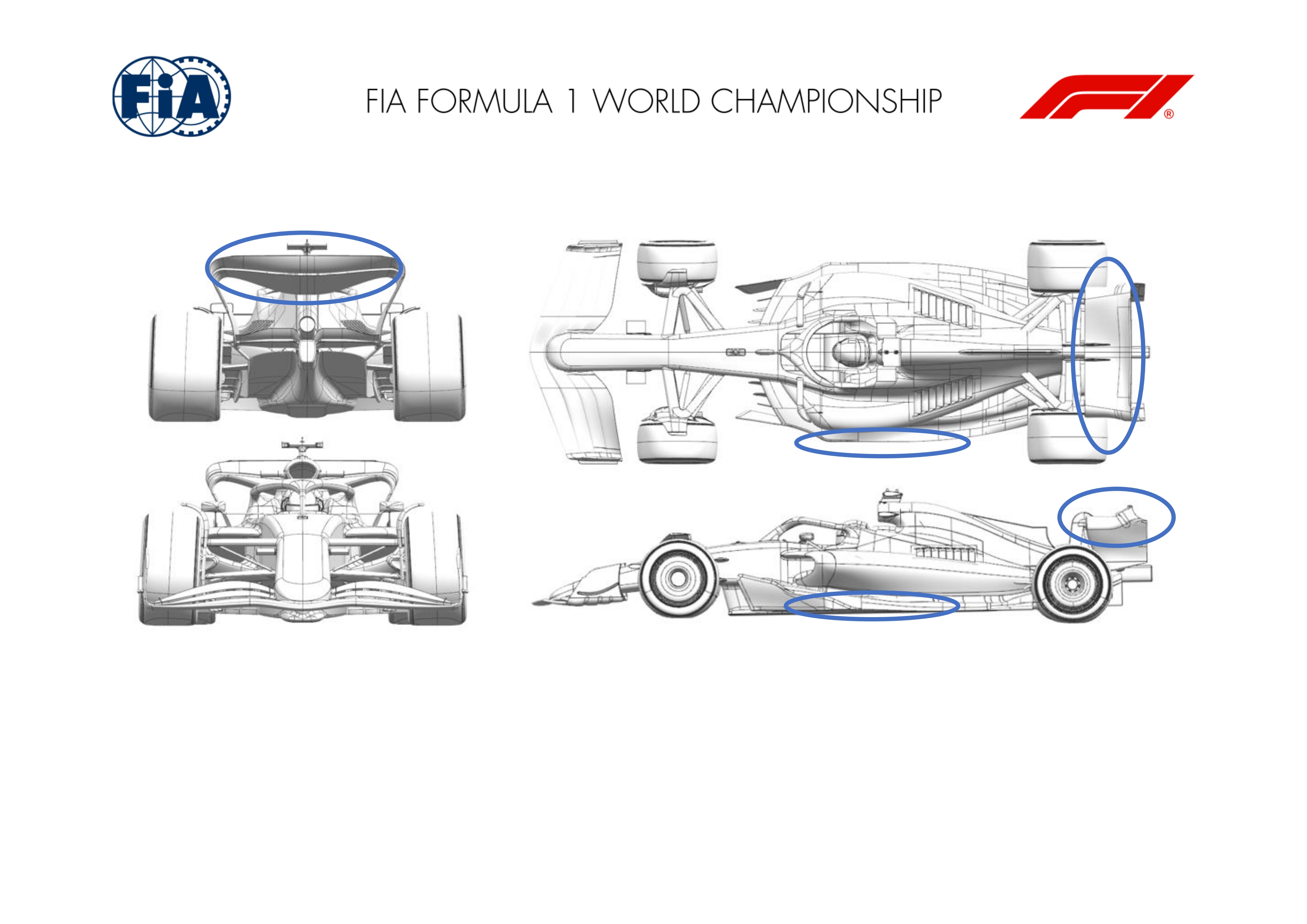 L'arête du plancher est modifiée, avec une corde augmentée et de nouvelles ailettes, afin d'augmenter le flux massique sous le plancher avant et d'exploiter davantage la circulation tourbillonnaire générée par les déflecteurs. Ces derniers ont d'ailleurs été reconfigurés, avec une nouvelle géométrie intérieure qui améliore la distribution des pressions locales et favorise l'écoulement vers l'arrière du fond plat.