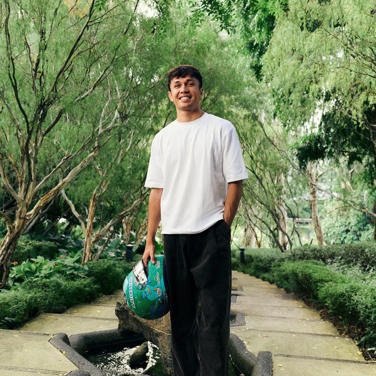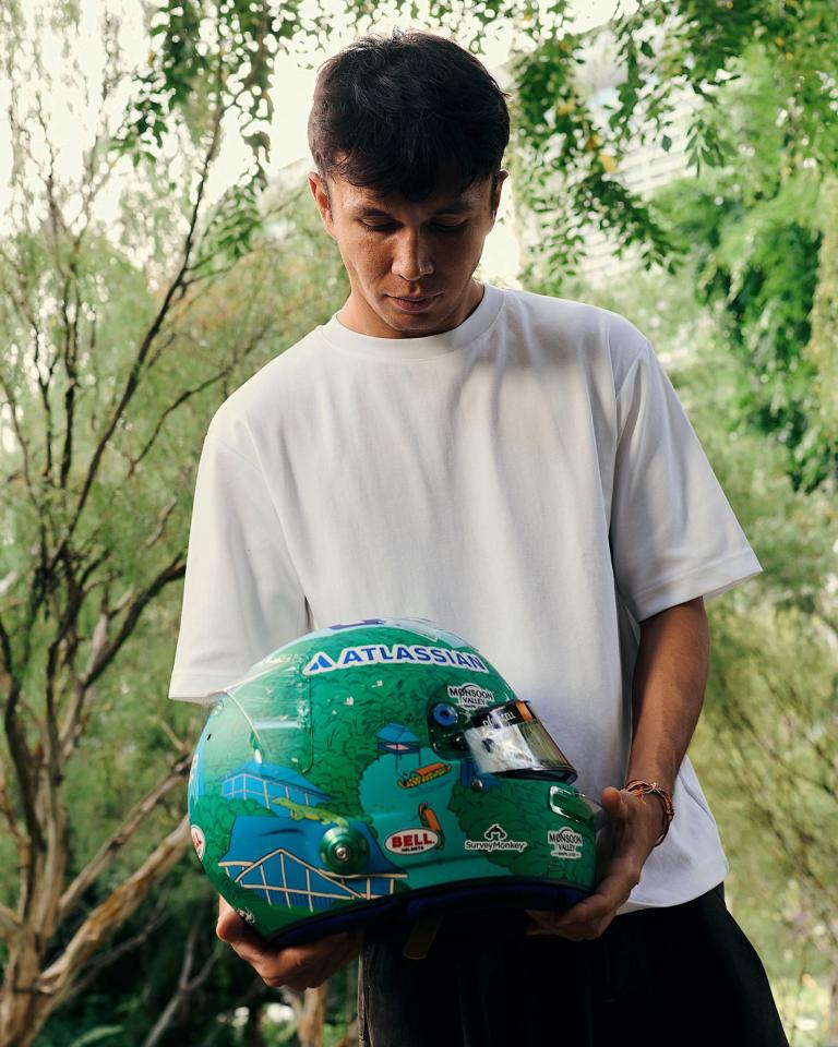 "Je suis fier de présenter mon casque SEA pour le Grand Prix de Singapour. Ce casque sera mis aux enchères en collaboration avec l'UNICEF Thaïlande. L'intégralité des bénéfices sera reversée au travail de l'UNICEF pour permettre aux enfants en Thaïlande, en particulier les plus défavorisés, de grandir en sécurité, en bonne santé et soutenus afin qu'ils puissent atteindre leur plein potentiel. Vous pouvez participer à l'initiative via https://unicef.or.th/alex."