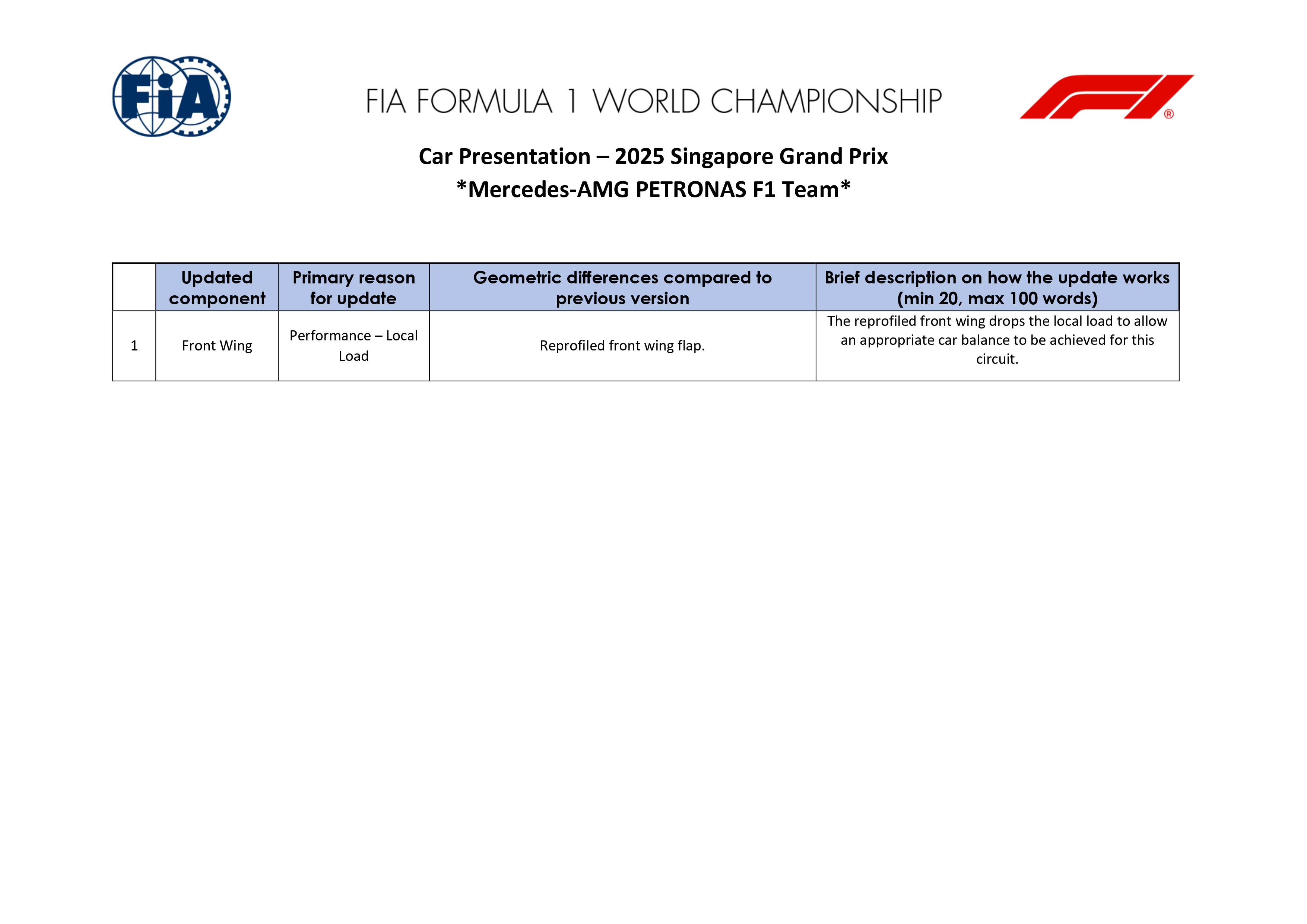 Mercedes n'apporte qu'une seule évolution pour Singapour, concentrée sur l'aileron avant. L'équipe a retouché le profil du volet, afin de modifier la répartition de charge générée par cet élément. L'objectif est de réduire localement la…