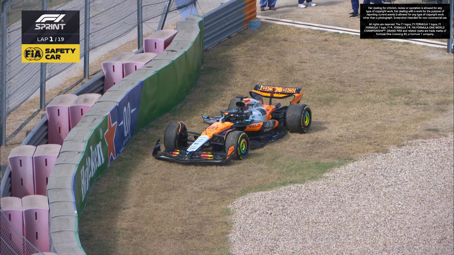 Oscar Piastri a vu sa course Sprint s'arrêter dès le premier virage, victime d'un accrochage provoqué par le contact entre sa McLaren et la Sauber de Nico Hülkenberg. L'Australien, percuté avant de heurter son coéquipier Lando Norris, a expliqué brièvement la situation au micro de Sky Sports F1.