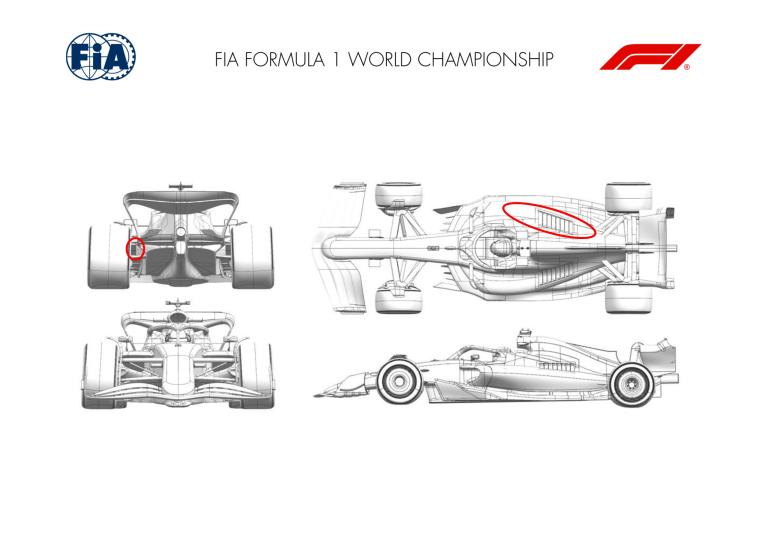 La Scuderia a d'abord ajouté des ouïes de sortie supplémentaires sur la carrosserie supérieure afin d'augmenter la capacité d'extraction thermique du bloc moteur. Cette solution, courante à Mexico, vise à compenser la raréfaction de l'air à 2 200 m d'altitude. Elle élargit le spectre de refroidissement du V6 hybride, mais induit une légère perte d'efficacité aérodynamique en augmentant la traînée.
